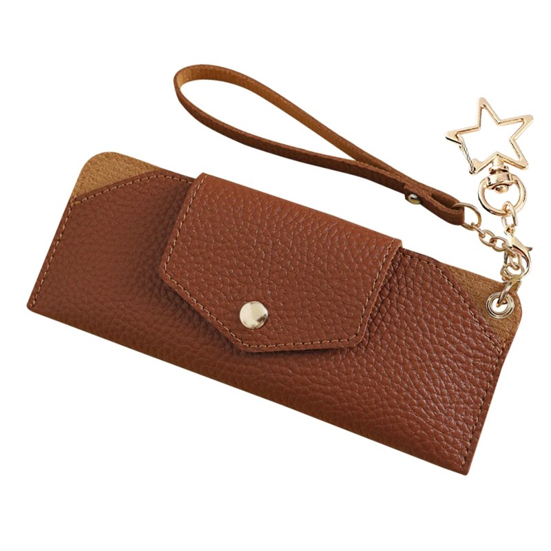 [SFTRADE] メガネケース 眼鏡ケース 薄型 軽量 スリム 可愛い おしゃれ 合皮 革 サングラスケース レディース ソフト メガネポーチ メガネ収納袋 コンパクト 持ち運び メガネ収納ケース バックル付き リストストラップ付き (ブラウン)