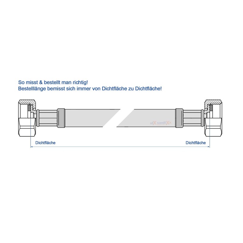 The length of the hose is defined from sealing surface to sealing surface.