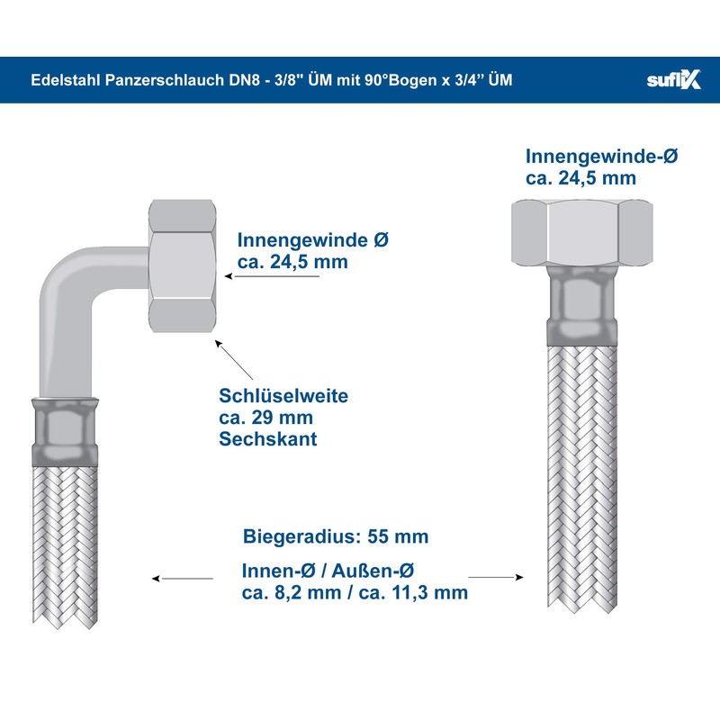 - Nominal width: DN 8 (approx. Outer diameter: 12.4 mm).