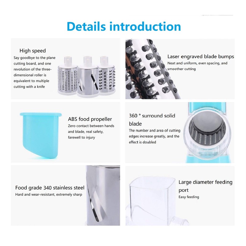 - 3 Interchangeable Roller Blades: Includes 3 versatile blades for thin slices, thick slices, and shredding, catering to all your food prep needs.