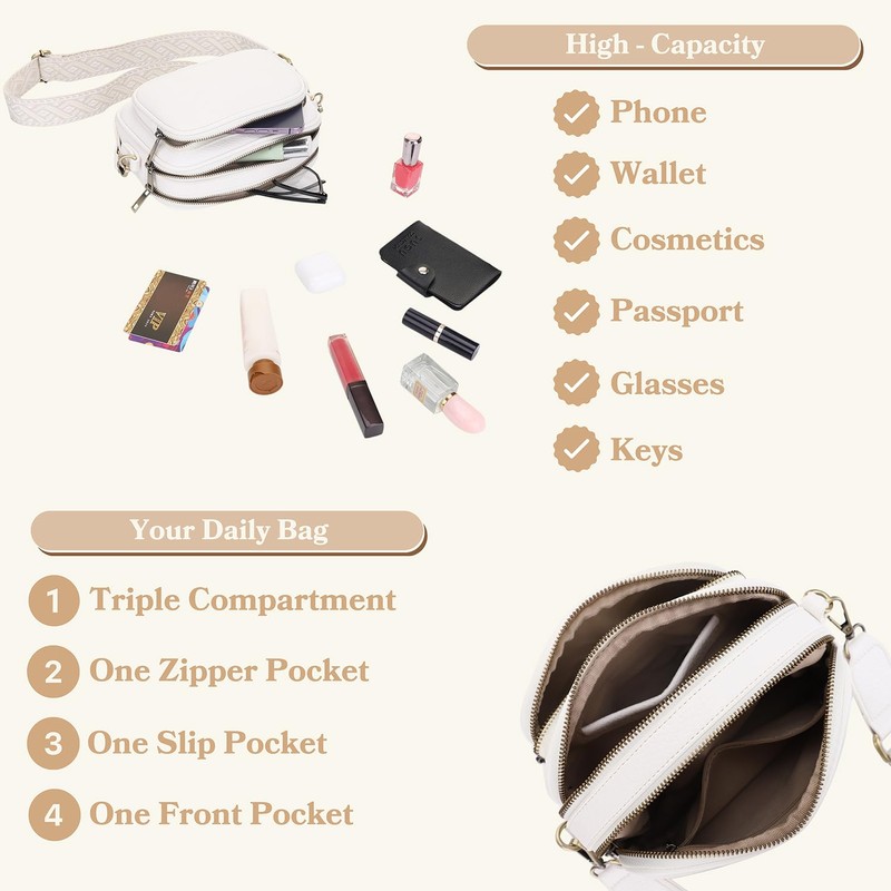 - Triple Compartment Organization – Stay organized with dual compartments that keep your essentials neat and accessible, ideal for quick access to your phone, wallet, keys, and more.