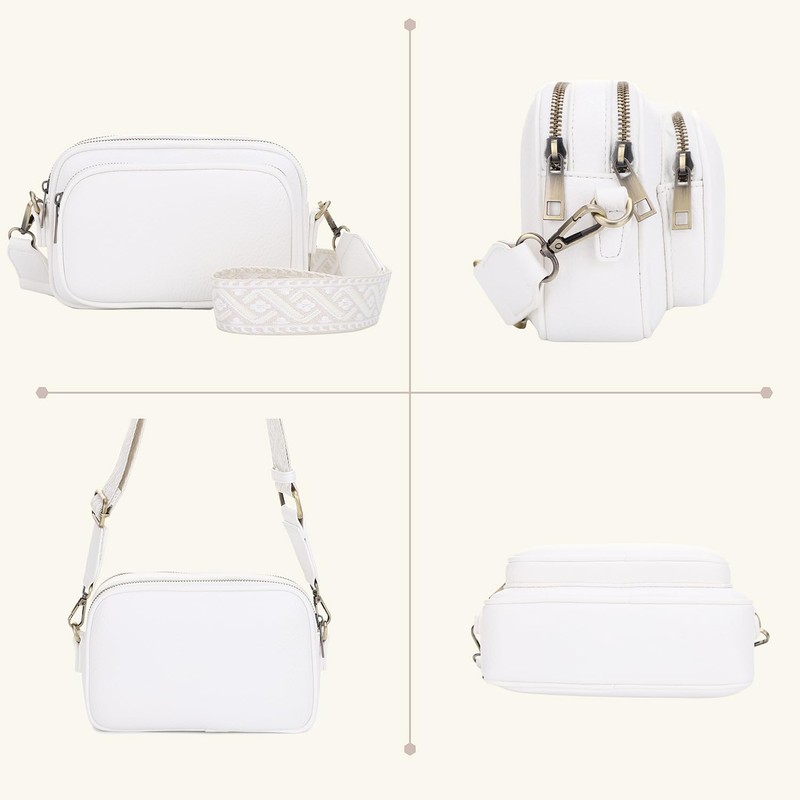 SG SUGU Small Crossbody Bag for Women, Triple Compartment Shoulder Handbags with Adjustable Wide Strap, Camera Purse for Working Shopping WHITE