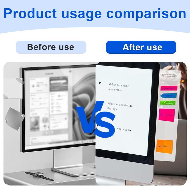 - Easy to Use These office equipment for desk are instantly torn off, easy to install and remove without leaving traces. Simply peel off the protective film, wipe off the dust from the edge of the computer monitor and stick the memo boards to the right or left side.