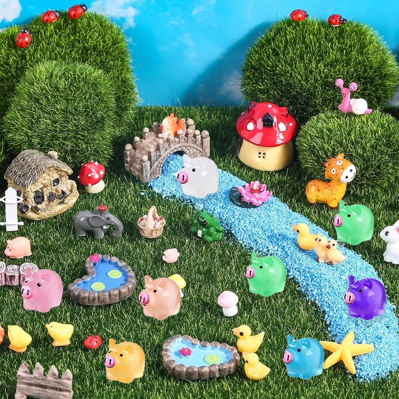 - Widely Application Mini resin pigs are great for DIY and miniature landscape projects. They bring joy and creativity to your life and are great as rewards or gift bag fillers. These small figurines are a guarantee of fun and vibrant decorations