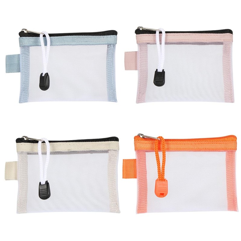 SGERUFZ Pack of 4 mesh zip bags, small mesh bag with zip, make-up zip pockets, small cosmetic bag, portable travel zip bags for lipstick, headphones