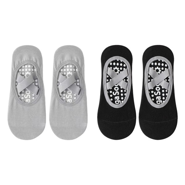 【Package Includes】You will receive 2 pairs of yoga socks in total: 1 pair black and 1 pair gray yoga socks.