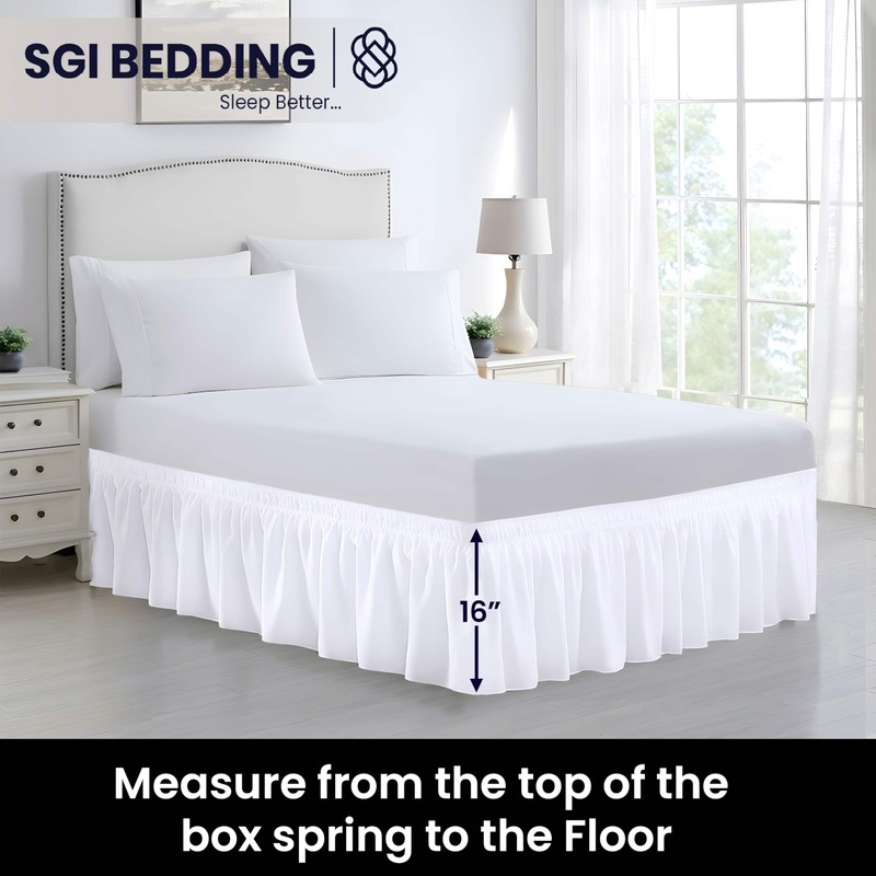 SGI bedding 16 Inch Drop Bed Skirt Queen Size Elegant Wrap Around Pattern Wrinkle Resistant Fabric for Modern and Stylish Look -White
