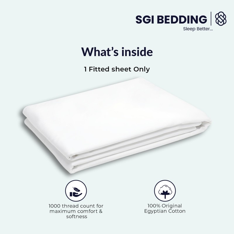 SGI bedding 28" King Split Top Flex Head Fitted Sheet ONLY 100% Egyptian Cotton Sheet 1000 Thread Count Flex Top Fitted Sheet for Adjustable Bed 18" Deep Pocket, Sleep Number Bed - White