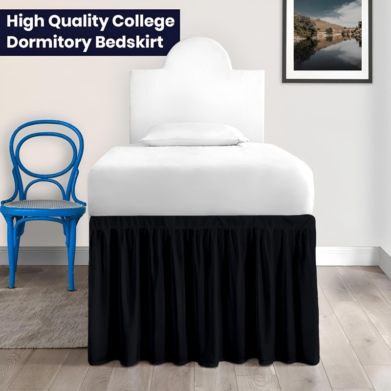 - College Dorm Essentials: Dress Up your Bed with SGI Bedding Beautiful Ruffled Pattern Twin XL 42 inch Drop Length Dorm Room bed skirt. This split corner Bed Skirt is made of ultra-strong Microfiber Fabric that lasts long and gives your dorm room a new touch and elegance.