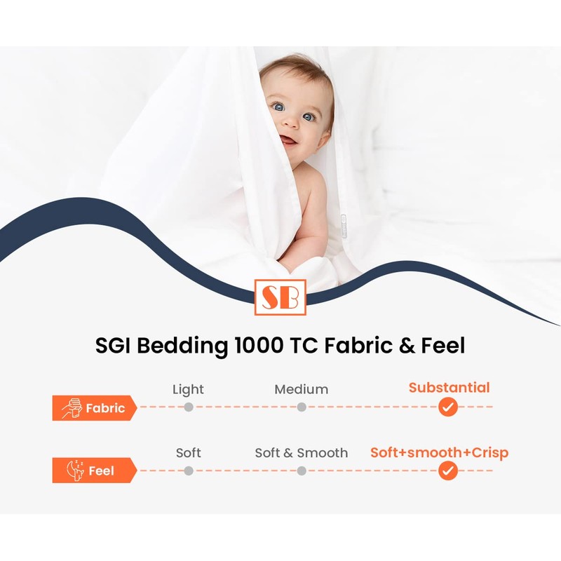 - Luxury Cotton Sheets: Indulge in the opulence of our 1000 thread count sheets crafted from 100% Egyptian cotton sateen. These sheets are breathable, soft, and thick, similar to high-end luxury hotel linens. Meticulously designed to deliver a serene sleep experience, they offer a gentle and cool feel, ensuring a cozy and peaceful sleep.