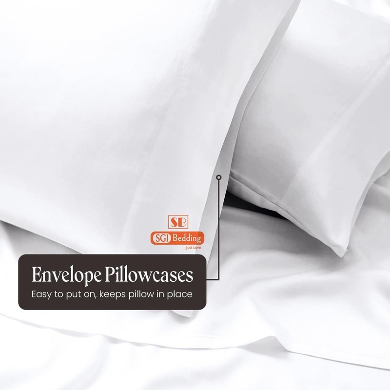 SGI bedding Ultra Luxury 4 Piece Egyptian Cotton Sheets King Size - 1200 Thread Count, 100% Cotton Sheets, 15" Deep Pocket Sheet Set, Breathable, Ultra Soft and Premium Cotton - Bright White