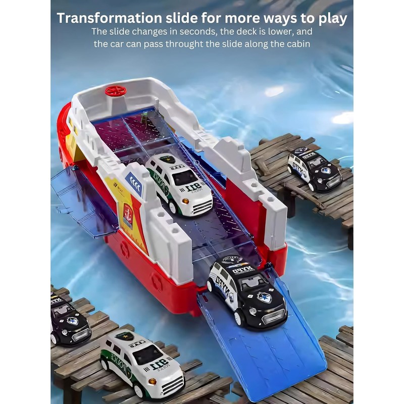 - Includes 3 Super Cars: Enhance the adventure with three super cars included, perfect for deploying on rescue missions or exploring the high seas alongside the fire ship model.