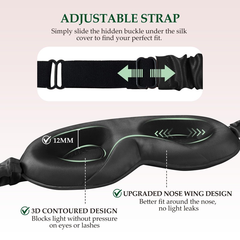- 【100% Total Light Blockage】The SGMSILK silk sleep mask features a 6-layer construction, including two additional light-blocking layers for complete darkness. Its upgraded nose cutout design perfectly conforms to all nose shapes, effectively sealing out all light. Whether you're taking a midday nap or settling in for a full night’s rest, this mask provides the ideal dark environment for deep, uninterrupted sleep