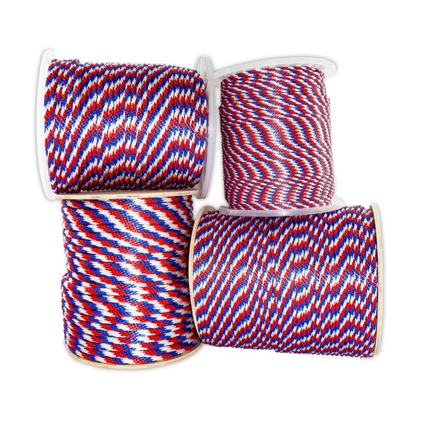 SGT KNOTS Solid Braided Polypropylene Derby Rope – Durable, Weatherproof Rope Ideal for Animal Handling, Boating, Camping, and Knot Tying Practice (3/8" x 250ft, RedWhiteBlue)