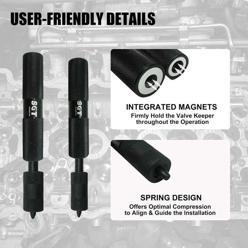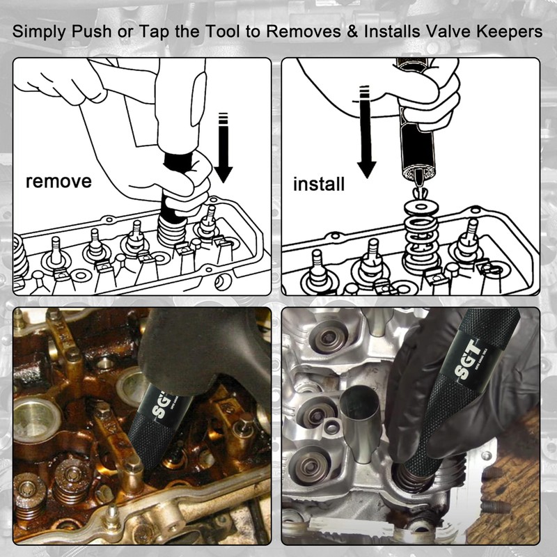 - HASSLE FREE VALVE SERVICE: SGT valve keeper remover and installer tool kit helps you replace valve springs and valve keepers quickly and easily without removing the engine head