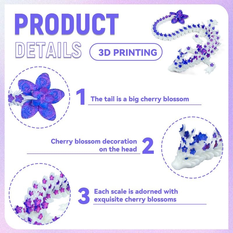 - Collectible Art Piece: Ideal for both display and imaginative play, this 3D Printed Cherry Blossom Dragon is a standout collectible that will captivate the hearts of dragon lovers and collectors alike, elevating any space with its artistic appeal.