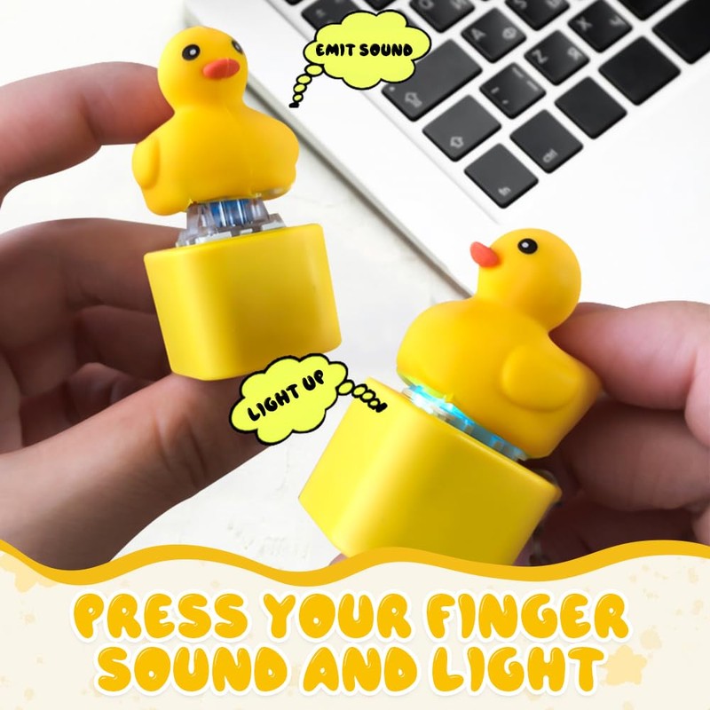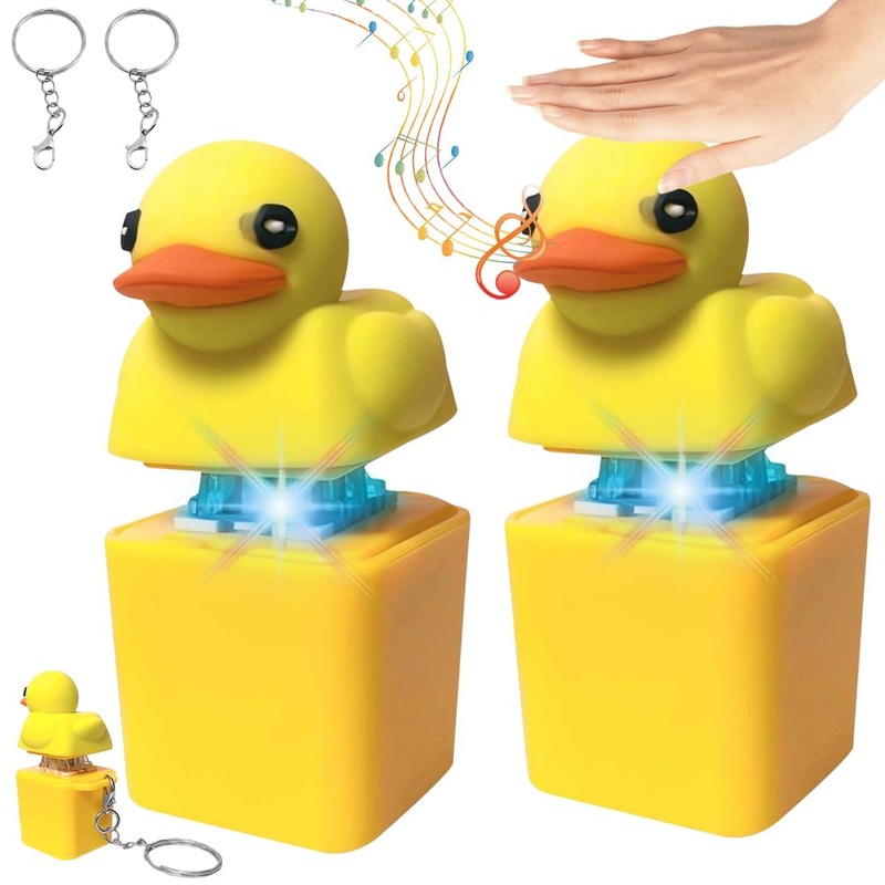- 【Enten Quakender Enten Schlüsselanhänger】 Mit seinen lebendigen Farben und interessantem design bringt das duckeys quacking fidget toy schlüsselanhänger, fröhliche Energie in Umgebung und macht es zu einem süßen Objekt für Entspannung und Spiel.In einer bezaubernden Mischung aus Farbe und Klang eingetaucht,drückt die schlüsselanhänger ente das Spielzeug,um Licht und Klang zu emittieren,was Entenliebhaber ein wunderbares sensorisches Erlebnis bietet