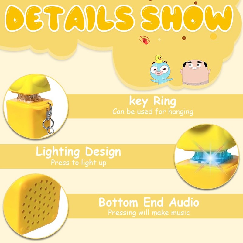 1. Der duckeys quacking fidget toy schlüsselanhänger verwendet eine Knopfbatterie und verfügt über ein eingebautes LED-Licht- und Soundgerät. Drücken Sie einfach darauf, um sanftes Licht und Musik auszugeben. Wenn Ihnen langweilig ist, können Sie es drücken, um Ihre Aufmerksamkeit abzulenken und Stress abzubauen. Außerdem können Sie damit Ihre Handmuskulatur trainieren.