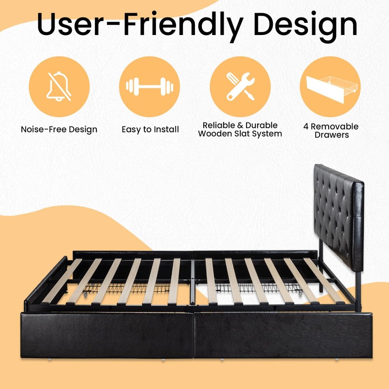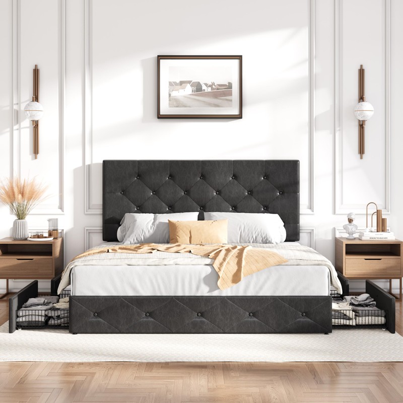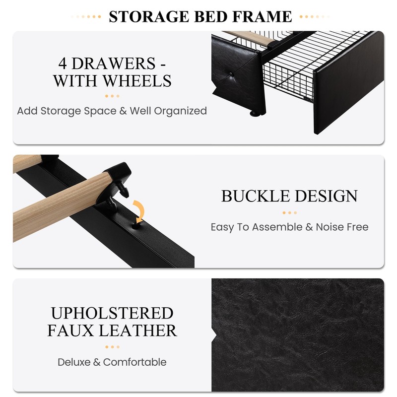 • Ample Storage: Featured with 4 wheeled drawers, this full bed frame provides ample storage space under the bed, perfect for storing bed sheets, accessories or off-season clothing