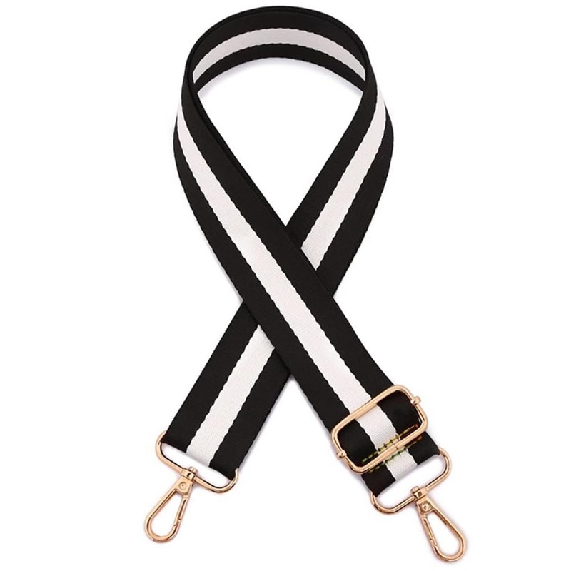 SHAARI Shoulder Strap, Shoulder Strap, Thick Bag, Bag Belt, Stylish, Stripe, Black/White/Plup, Black, Bright Gold Clasp, Adjustable Length, Replacement Belt, Wide Shoulder Strap, Black