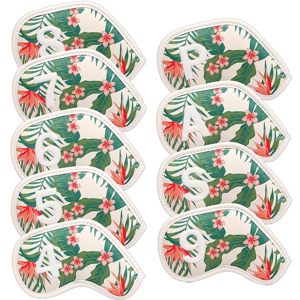 SHABIER 9pcs Golf Iron Head Covers Magnic Closure with Hawaii Style Design Iron Headovers Wedges Covers 4-9 ASP