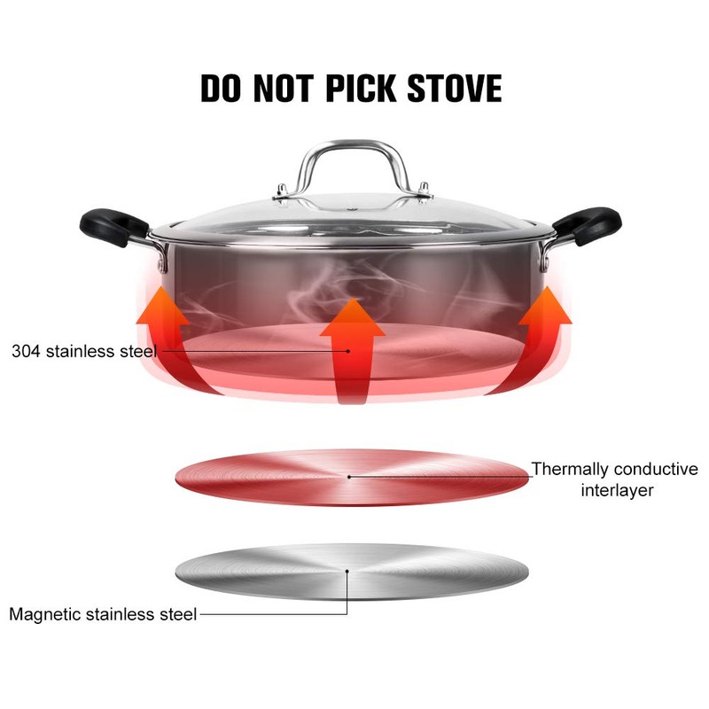 Shabu Hot Pot Stainless Steel,Chinese Induction Shabu Pot with Divider for Kitchen Cooker, Gas Stove