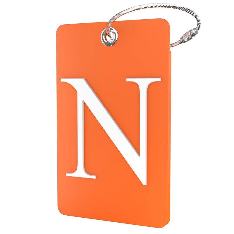 Shacke Luggage Tag Initial – Fully Bendable Tag w/Stainless Steel Loop (Orange) (Letter N)