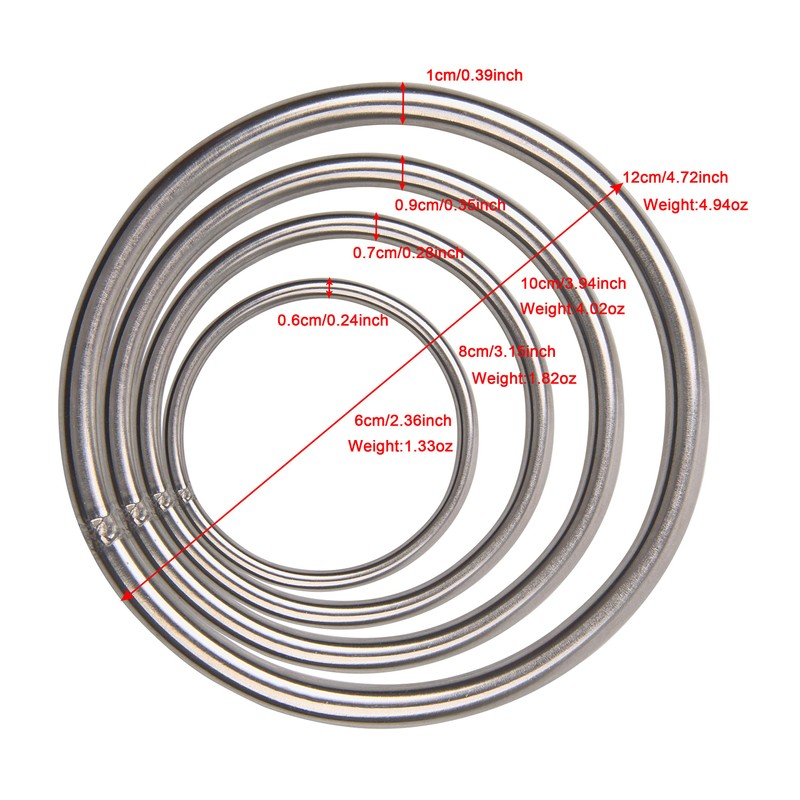Shaddock Fishing Stainless Steel Round Ring Welded - 316 High Strength Marine Grade Diameter 2.36in, 3.15in, 3.94in, 4.72in Multiple Sizes