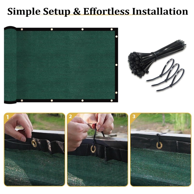 • Easy to Install- Use zip ties to fasten the grommets to the fence on each side. All grommets must be used to secure the fence screens to the fence( Zip ties sell separately)