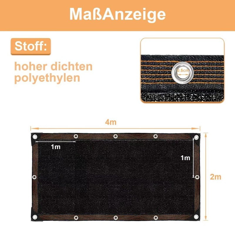 Shade Net Greenhouse with Eyelets, Black Shade Net, 2 x 4 m, 70% Shading Rate, UV-Resistant Sun Protection, Patio for Chicken Coop Garden Outdoor Sun Net