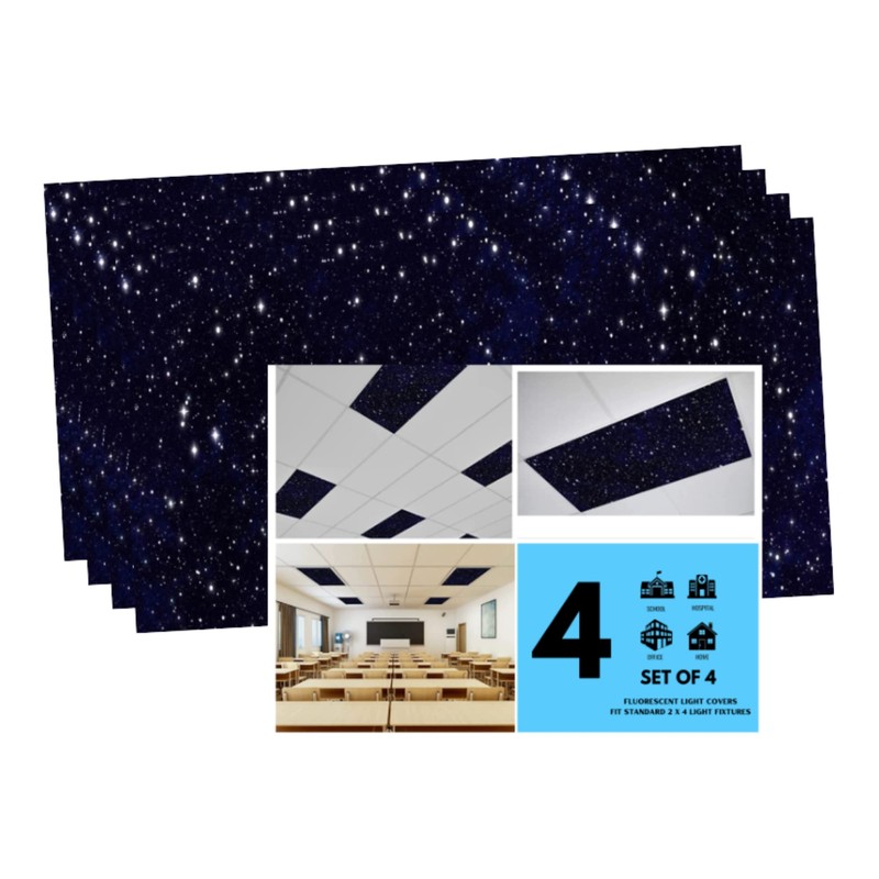 ShadeMAGIC - 4 Pack - Fluorescent Light Covers - 2x4 Film Insert for Ceiling Light Diffuser Panels - Night Sky Stars - Classrooms and Offices - Decorative Lighting