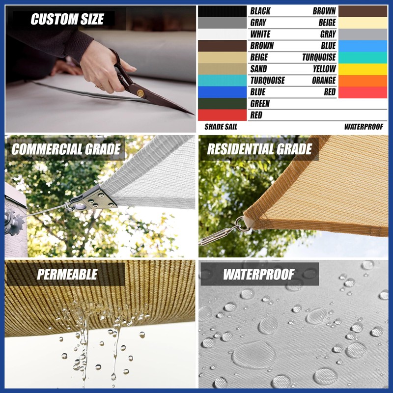 - Custom Size: we have a large selection of custom sized shade sails to meet all your requirements, please measure your venue accurately before purchasing; Shade sails may vary due to manual measurements, but the area of the fabric is constant