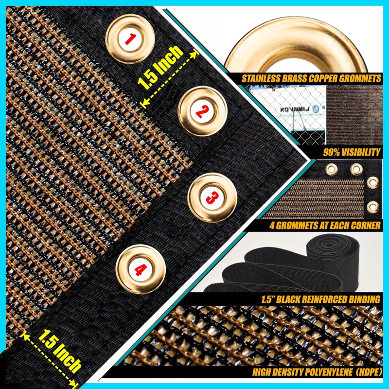 - Easy To Install: Fencing mesh comes with the extra stainless grommets and reinforced binding, grommets are made of stainless copper, each corner has 4 grommets (compares to similar products on the market only have 1-3 grommets). all edges are covered with black reinforced 3-inch binding (1.5-inch on each side). easy to fix the fence screen in place by included zip ties. compatible with wire fence, wooden palisade, chain link fence, railings and huddles
