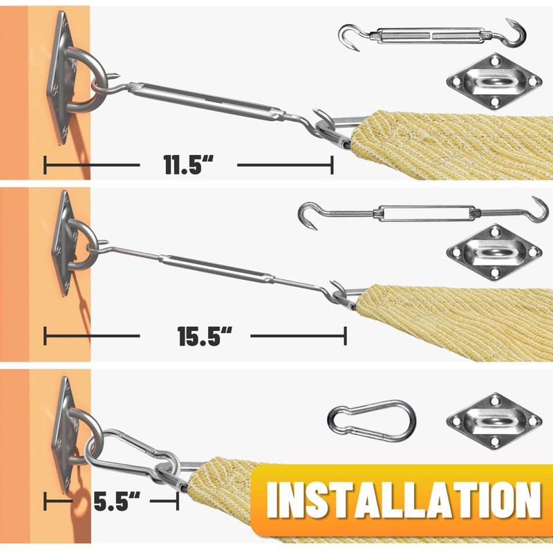 - ★【INSTALLATION GUIDE】: Installation hardware kits are required and sold separately, each D-ring will require one cable rope (DO NOT use nylon ropes, they break easily!!). Connect the other ends of cables to existing poles, trees or wall with shade sail hardware kits, high quality Shademart hardware kits and cables are strongly recommended for best performance and appearance.