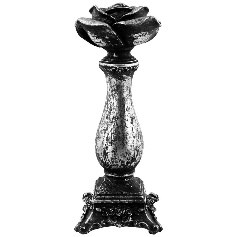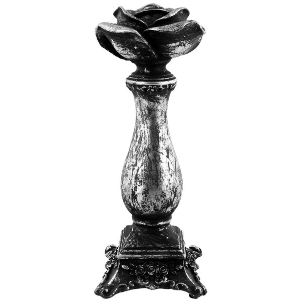 - Rose Candle Stick - Bougeoir en résine fini argent antique.
