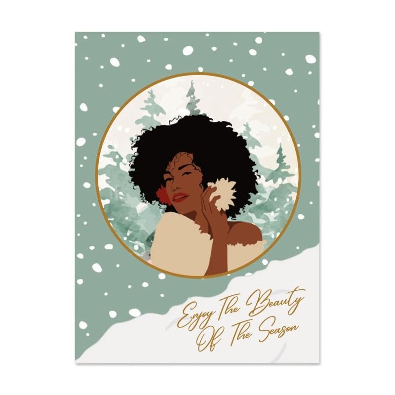 Shades of Color Enjoy The Beauty Of The Season African American Christmas Cards 5 x 6.75 inches, 15 Cards and Envelopes (X23-180)
