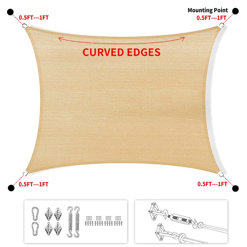 • Measurement is taken from corner to corner, edges are made slightly curved based on precisely calculated radian, prevent shade sail from sagging in the middle for best appearance and performance.