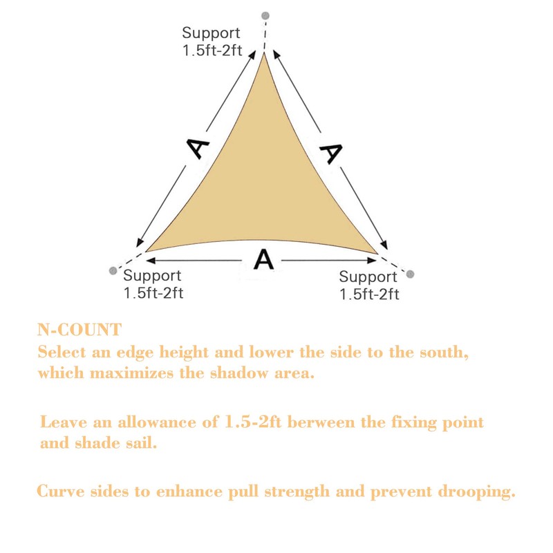 - Our sun shade sails have curved edges, this design is in order to prevent sagging from middle.