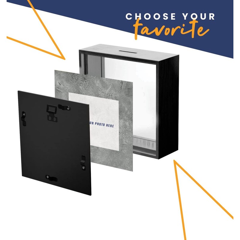 Shadow Box Piggy Bank for Adults - Black Money Box for Cash Saving, Honeymoon, College, Wedding, Date Night, Vacation Fund - Home Decor Memento Storage, 7x7x1.5 Inches