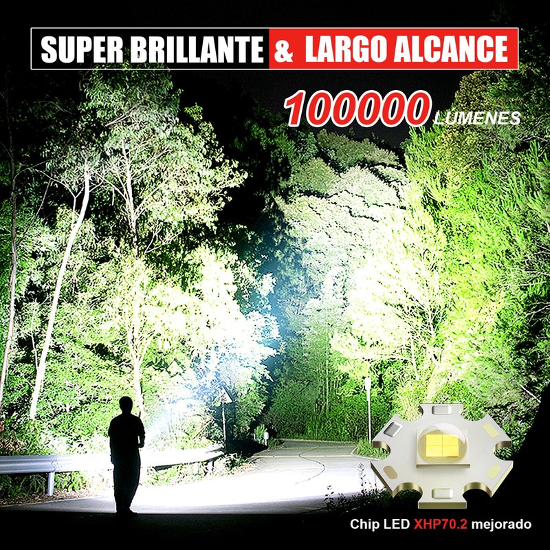 Shadowhawk Linterna Led Recargable, Lampara De Mano 100000 Lumenes XHP70.2 Linternas Led Recargables Alta Potencia, USB Potente Linterna Tactica Militar, IPX67 Impermeable 5 Modos Portátil linternas.