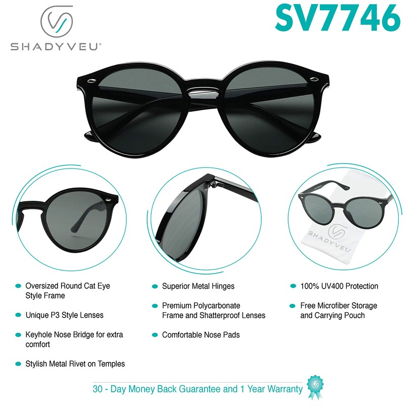 - Vintage Fashion: These cateye sunglasses features a P3 round style tinted lens that makes it unique and sophisticated. Also showcases a horn rimmed frame with elegant metal rivets on temples for that additional fashionable accent. Keyhole nose bridge gives additional comfort while the shades rest on top of your nose.