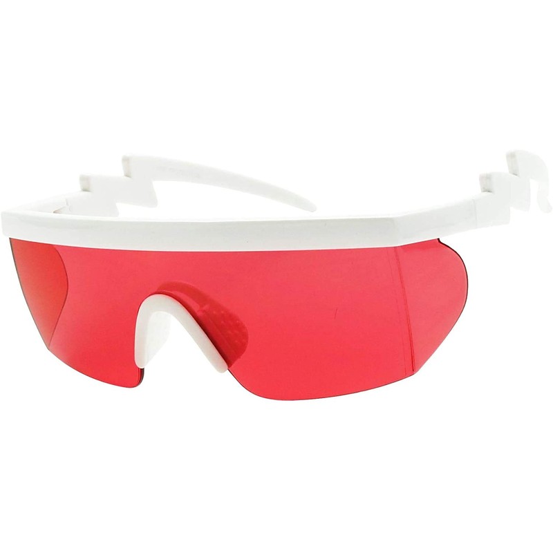 ShadyVEU Semi Rimless Red Translucent Lens Sports Performance Sunglasses White Half Frame ZigZag Arms Utility Goggles