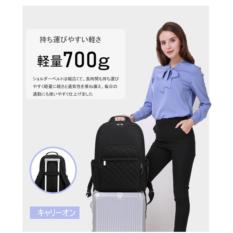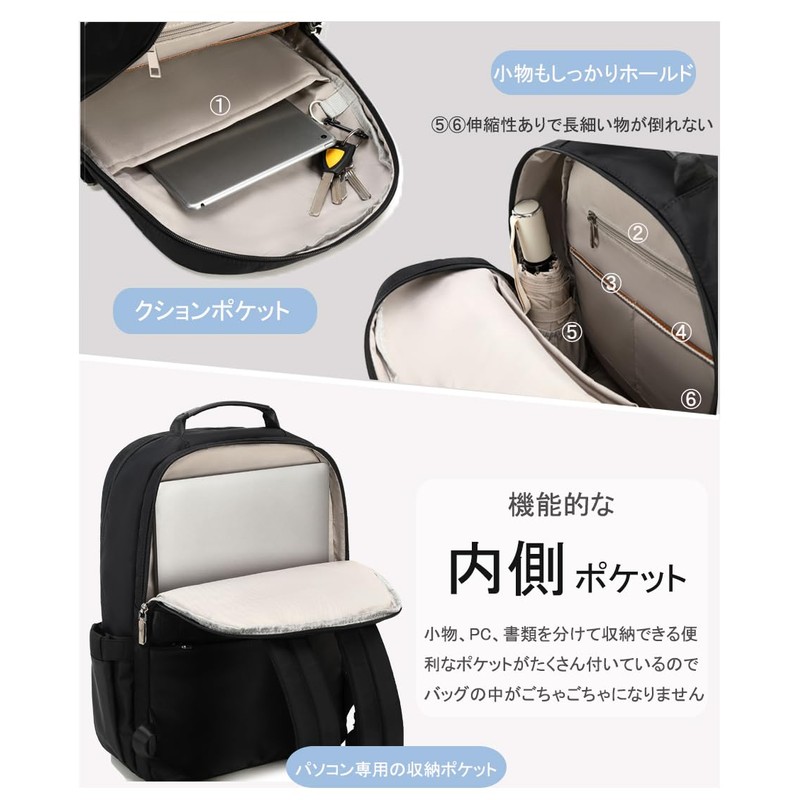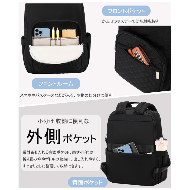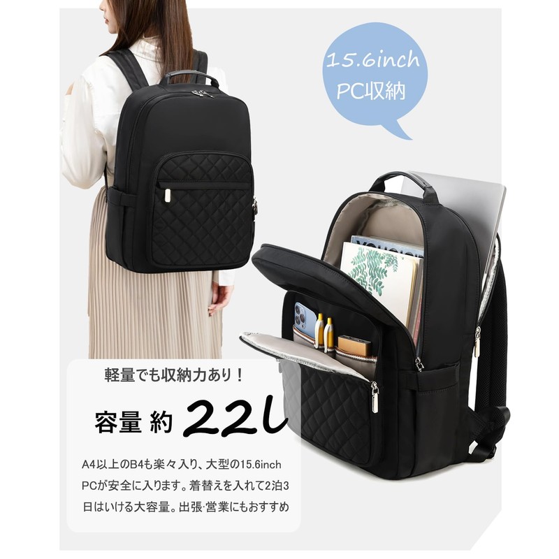 Shaelyka Women's Rucksack, Commute, Business Backpack, PC Backpack, 15.6 Inches, Large Capacity, Clean, Waterproof, Rucksack, Women's, A4, Multi-functional Backpack, Women's, Black, Lightweight,