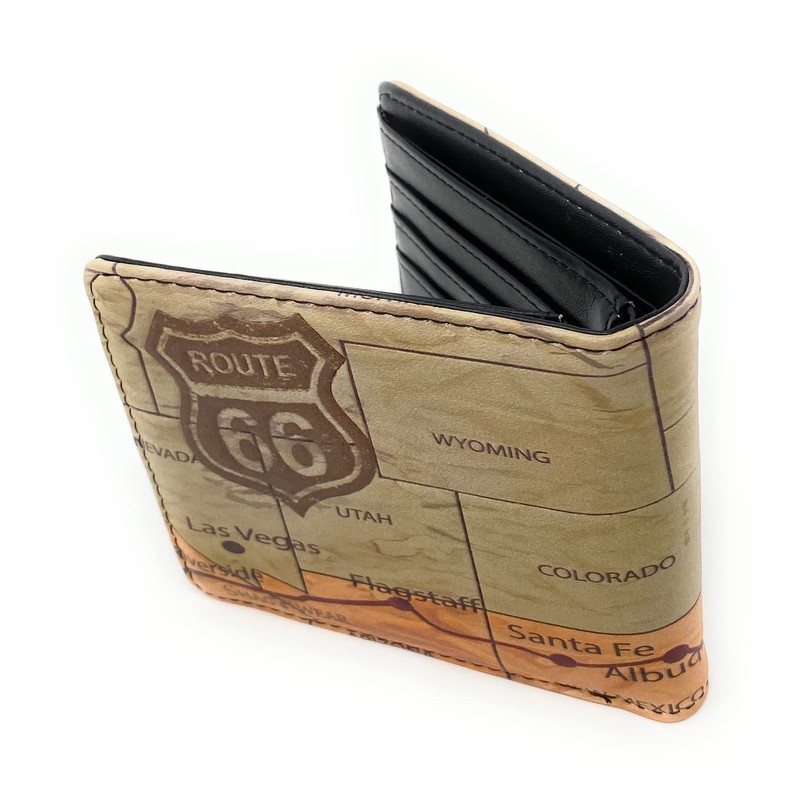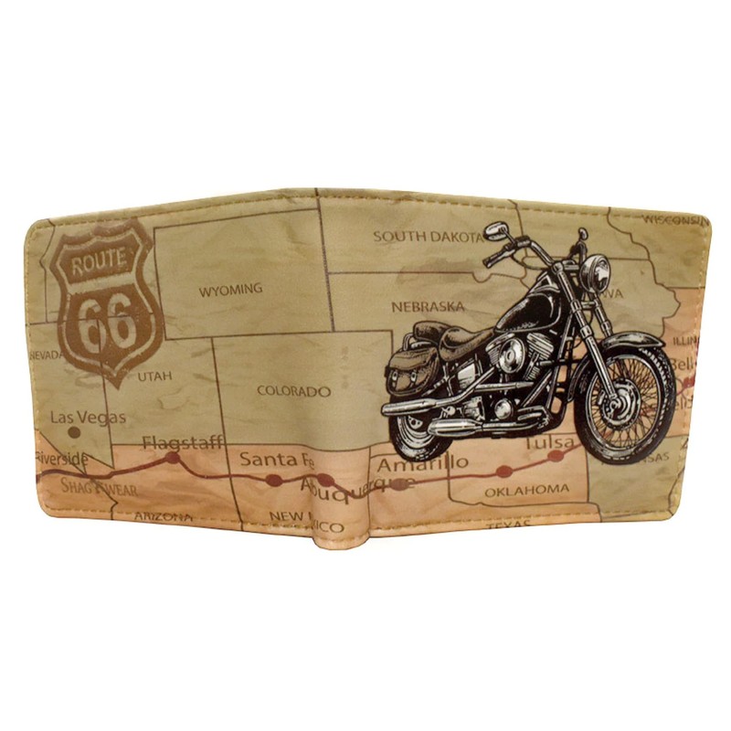 Shag Wear Route 66 Motorcycle Road Trip Wallet for Men and Teen Boys Vegan Faux Leather Brown