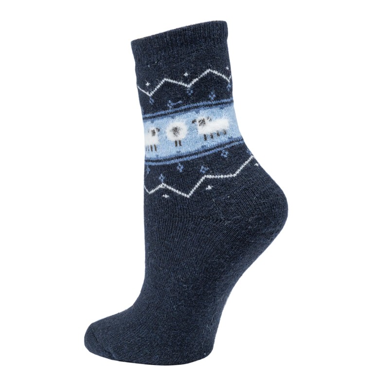 Shag Wear Women's Novelty Angora Socks, Cute Animal Casual Cozy Soft and Warm (3 Pack, Sheep Dark Blue)