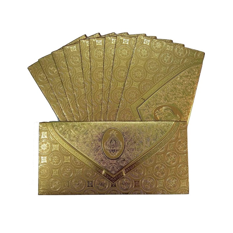 Shagun Envelopes Money Cash Gift 3 Fold Gold Design Envelope (10 Piece) for Indian Wedding / Diwali / Birthday / Anniversary