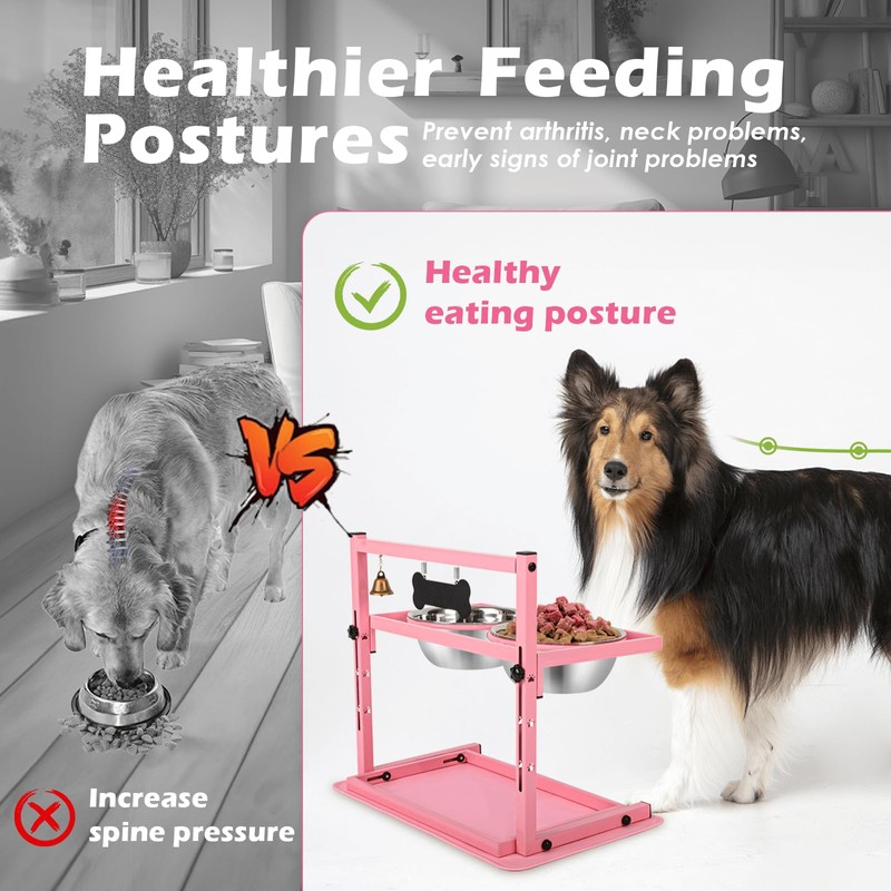 - 🐶ADJUSTABLE HEIGHT FOR ALL DOG LIFE STAGES: The elevated dog bowl is thoughtfully designed to be easily adjustable from 4.5 to 12 inches, making it suitable for large, medium, and small dogs and cats. Accompany your pet from puppyhood to adulthood with hassle-free height adjustments, no tools required.