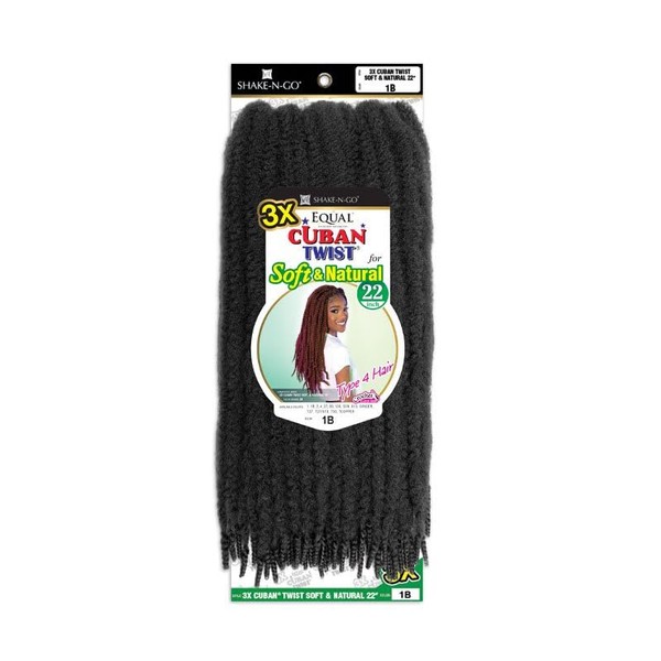 SHAKE-N-GO 3x Cuban Twist Soft & Natural 22" (1-PACK) (OFF BLACK 1B)