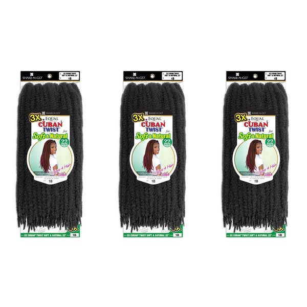 SHAKE-N-GO 3x Cuban Twist Soft & Natural 22" (3-PACK) (TWO-TONE MEDIUM AUBURN T30)