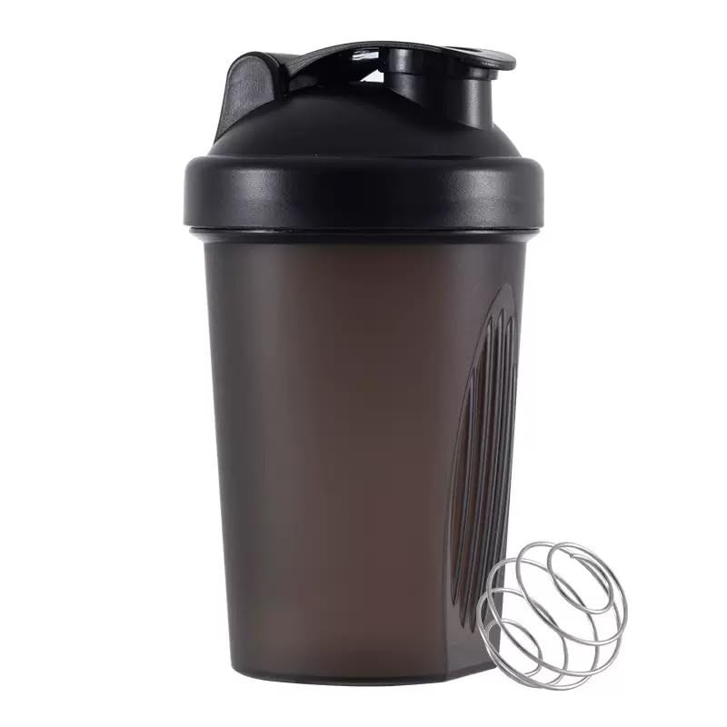 Protein Shaker Bottle Blender for Shake and Pre Work Out, Best Shaker Cup w. Classic Loop Top & Whisk Ball, (400ML, Black Top/Black Body)
